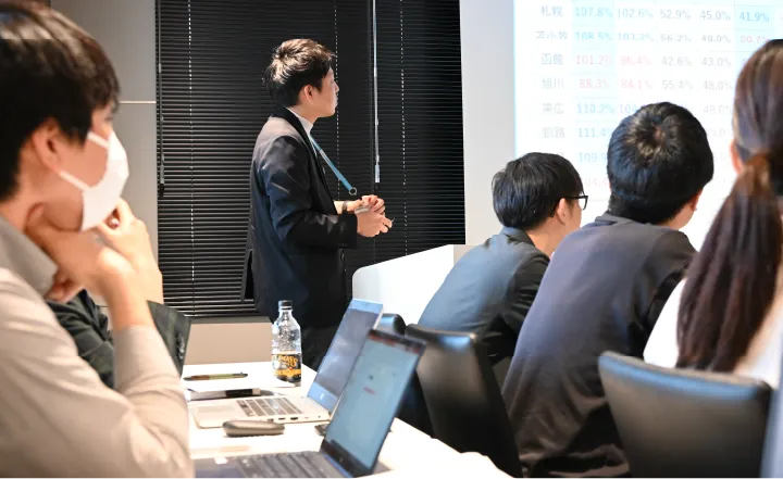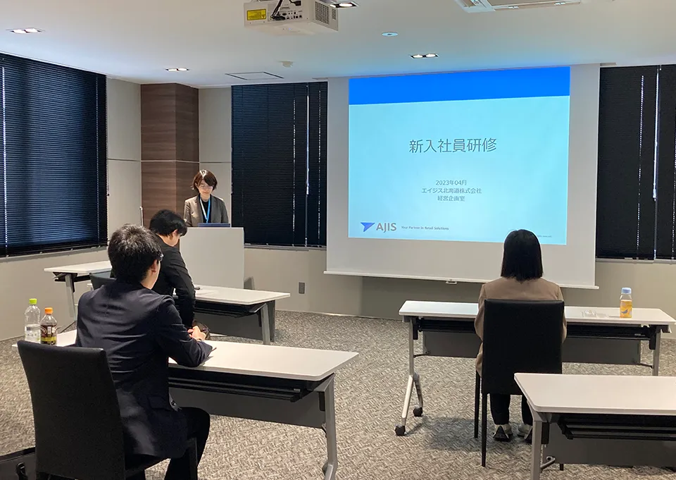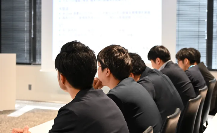 入社後すぐの新人研修では社会人としての基本となるビジネスマナーや仕事の基本を習得して、会社の歴史や当社が大切にしていることを学びます。